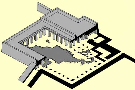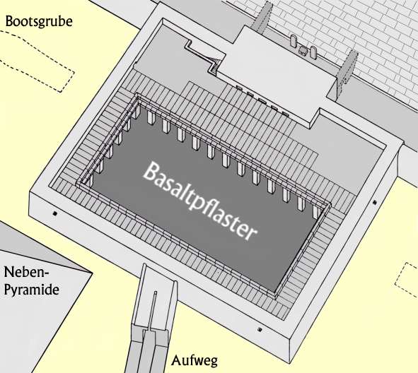 Rekonstruktion des Pyramidentempels mit Scheintür nach Stadelmann, Development of the Pyramid Temple, p. 12, Fig. 12.